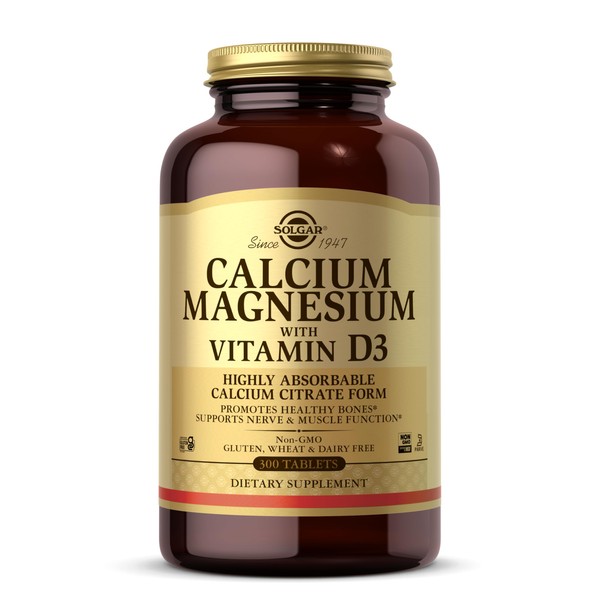 Solgar Calcium Magnesium with Vitamin D3, 300 Tablets - Promotes Healthy Bones, Supports Nerve & Muscle Function - Highly Absorbable Form - Non-GMO, Gluten Free, Dairy Free, Kosher - 60 Servings