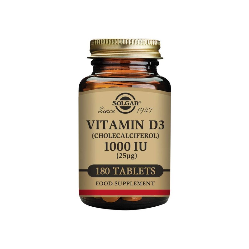 SOLGAR Solgar Vitamin D3 (Cholecalciferol) 25 mcg (1000 IU) - Helps Maintain Healthy Bones & Teeth - Immune System Support - Non-GMO, Gluten Free, Dairy Free, Kosher - Unflavored, 180 Count
