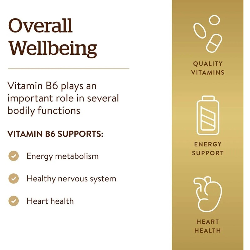Solgar Vitamina B6 100 Mg 100 Tabletas Hecho En Usa Sabor Sn - Producto Original de Alta Calidad, Entrega Rápida y Segura, Garantía Incluida