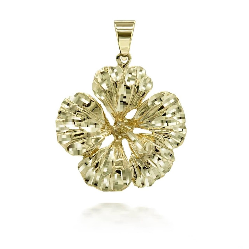 Solid 10k Yellow Gold Hawaiian Hibiscus Flower Pendant (MI)