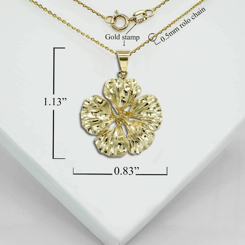 • 🌺This pendant is the perfect adornment to embellish that favorite necklace, anklet, or bracelet of yours. Comes alone or with a rolo chain necklace in your choice of 16”, 18”, 20”, or 22” long. Finely handcrafted with authentic 10 karat yellow gold in stunning detail, this lovely piece glistens in a glossy finish and stylish fashion.