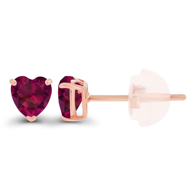 - Created-Ruby: This 14K Rose Gold 4mm Heart Created Ruby Stud Earrings with Silicone Back features 2 gemstones with a total carat weight of 1.00 CTW.
