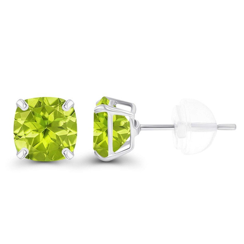Solid 14K White Gold 6mm Cushion Natural Green Peridot August Birthstone Genuine Stud Earrings For Women