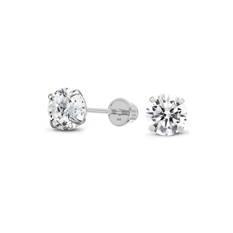 - 14 Karat White Gold Screw Backings Included, Secure Screw Back, Safety Clutch Comfortable Backings. Great for sleeping, shower, pool, beach, sports and military. Stays on secure to prevent lost earrings.