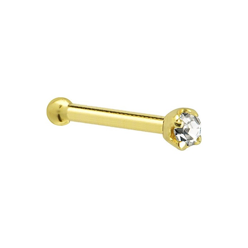 Solid 14k Yellow Gold 1.5mm (0.015 cttw) Genuine Diamond Nose Stud Bone 20 Gauge 1/4"