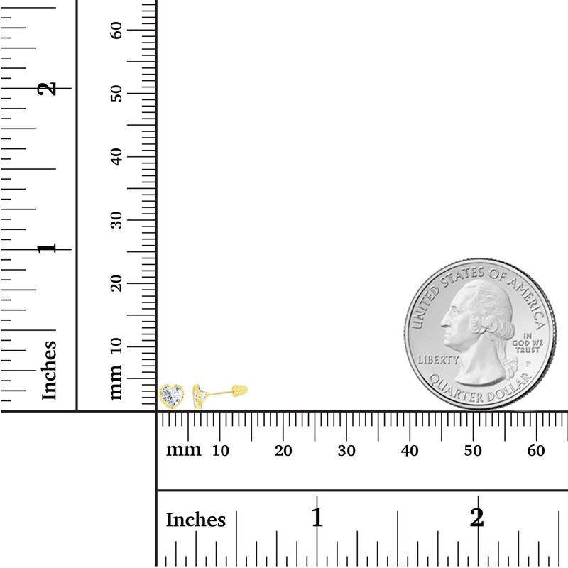 - Cubic-Zirconia: This 14K Yellow Gold Diamond Cut Basic Heart Bezel 4x4mm Hat Screw Back Stud Earring features 2 gemstones with a total carat weight of 0.80 CTW.