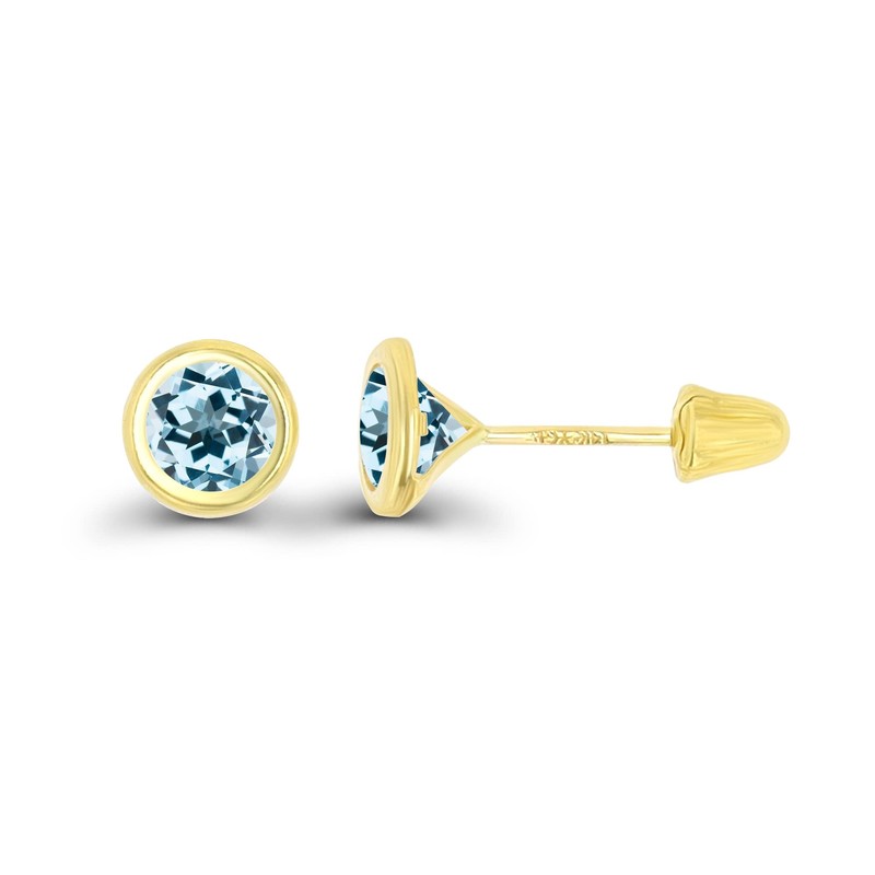 Solid 14K Yellow Gold 4mm Round Natural Sky Blue Topaz December Birthstone Bezel Screw Back Stud Earrings
