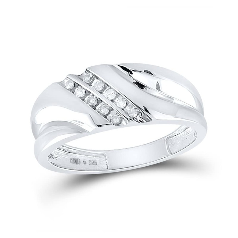 Solid 925 Sterling Silver Channel-set Real Natural Diamond Mens Wedding Band Ring 1/8 Carat - Size - 9.5 (.12 Cttw)