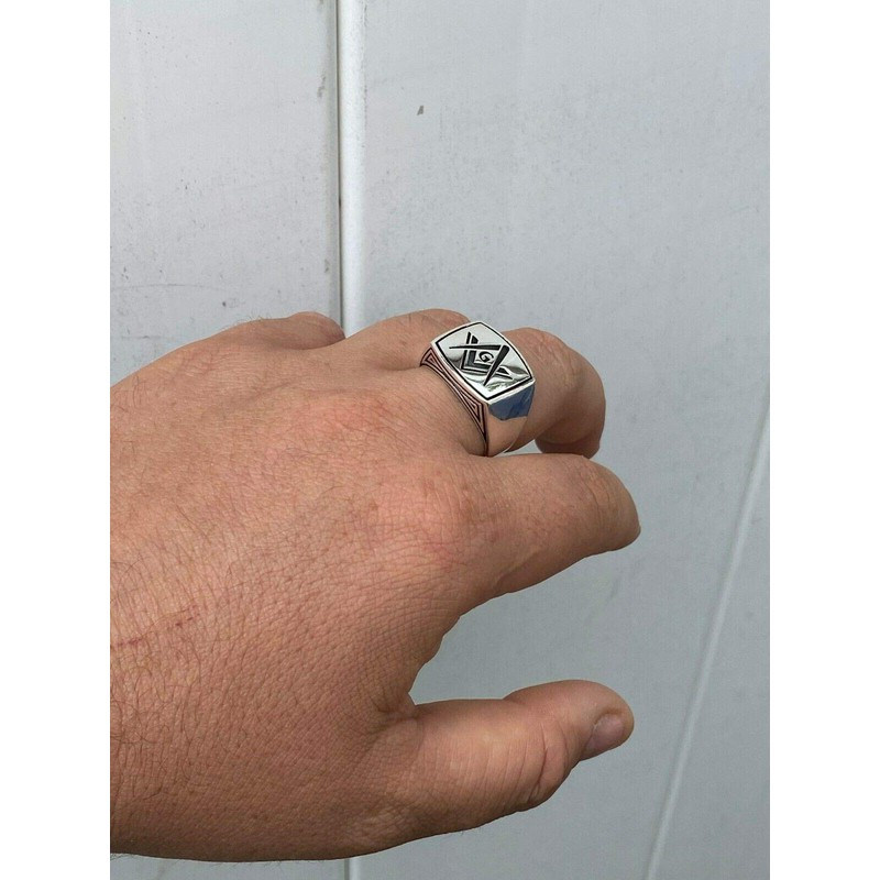 Solid 925 Sterling Silver Mens Masonic Ring - Plain Freemason Ring - Sizes 7-13 Heavy (10)
