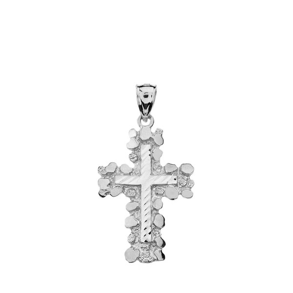 Solid 925 Sterling Silver Nugget Cross Crucifix Religious Pendant (Medium)