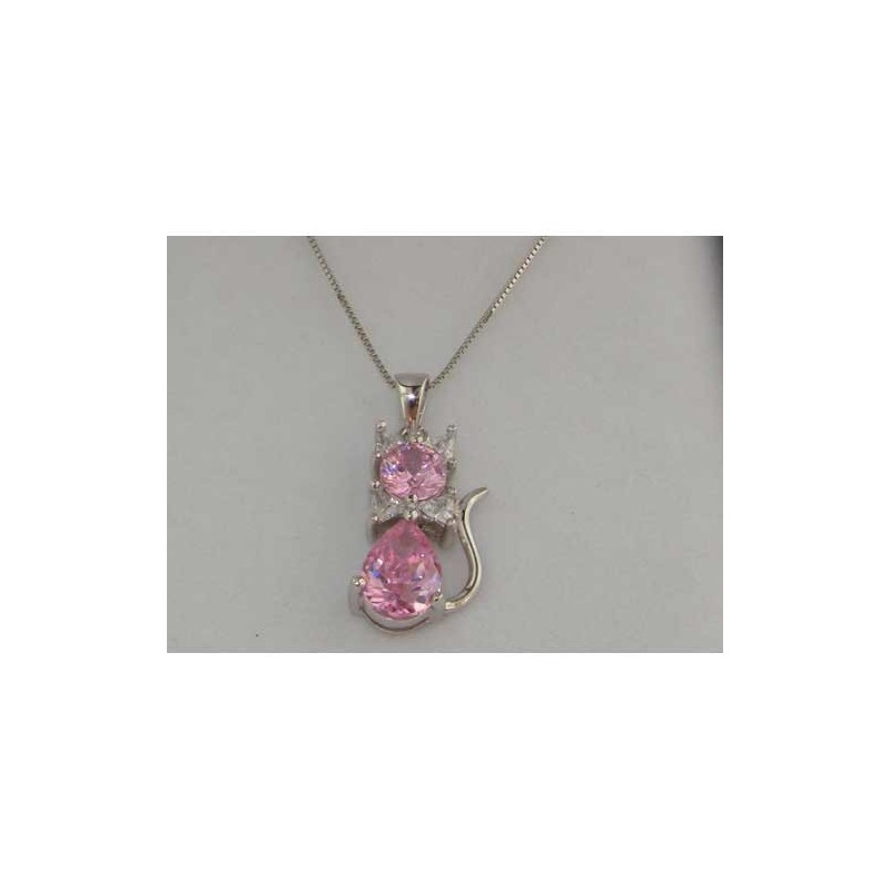 Solid 925 Sterling Silver Stone set Cat Pendant & 18" Sterling Silver Chain Necklace