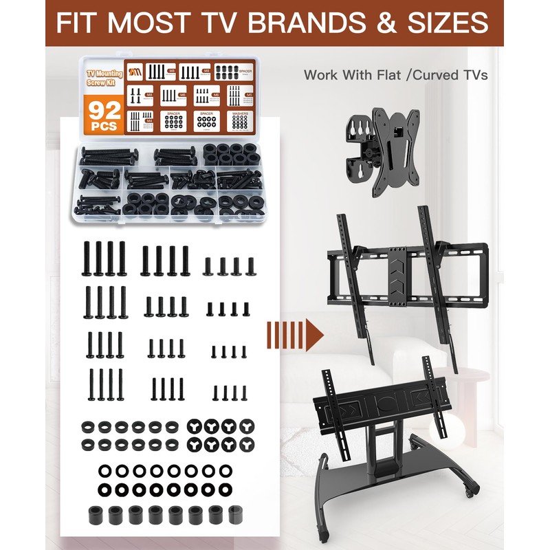 Solid As Mountain 92PCS Universal TV Mounting Hardware Screw Kit Set - M4 M5 ...