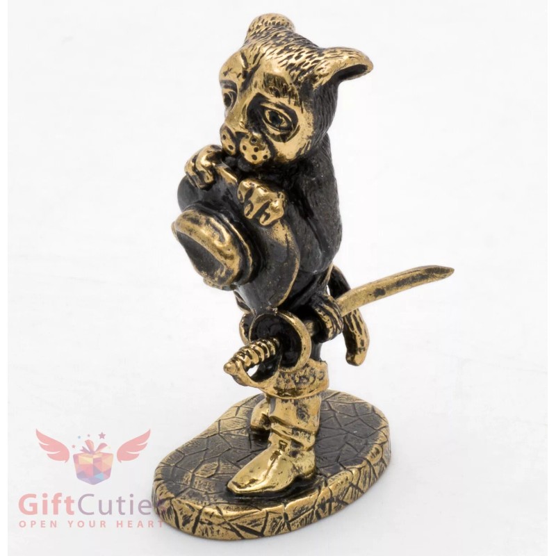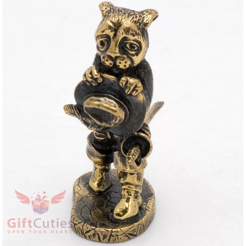 Solid Brass Figurine of sad Cat Puss in Boots Fairy tale IronWork