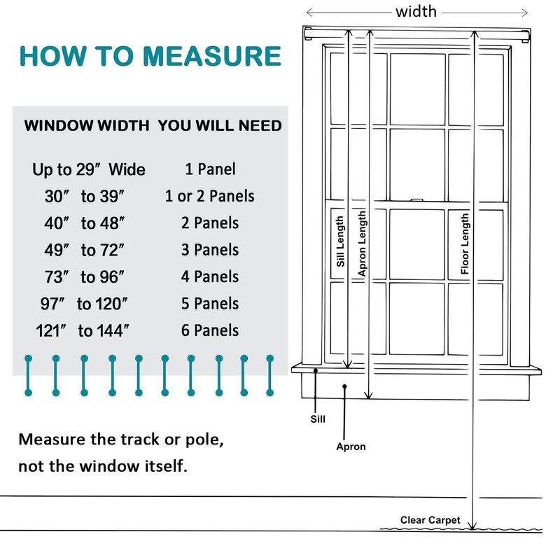 - SET OF 2 PANELS: Sold per pair, panel measures: 52 inch wide by 96 inch long| Set measures: 104 inch wide by 96 inch long. Each panel has 8 matching grommets (rim of grommet is 2.4", while inner is 1.6"), can be hung from a basic or decorative curtain rod