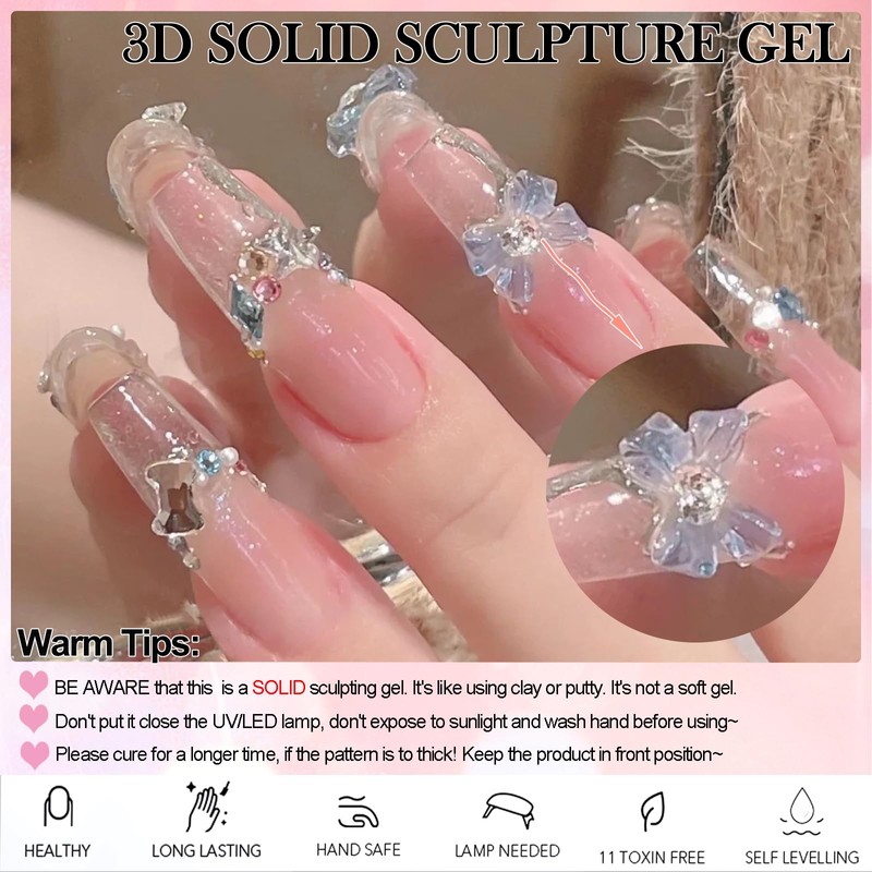 • 3D Carve Model: DIY different designs with this Nail Builder Gel, such as flowers, bear, star, moon, heart, every shape you want. Makes your hands more attractive.