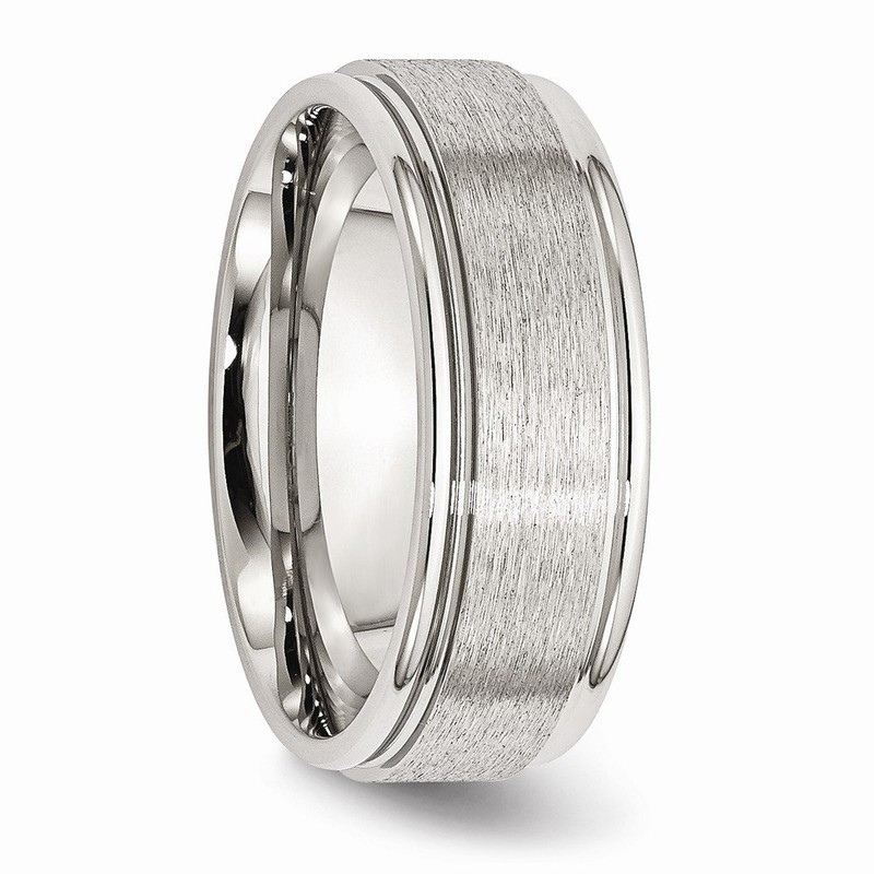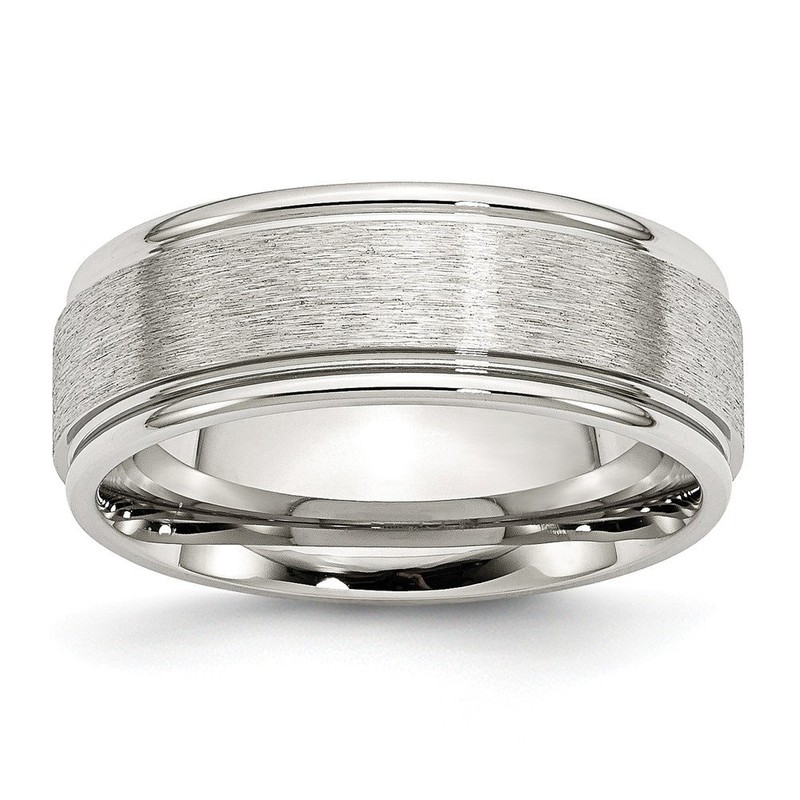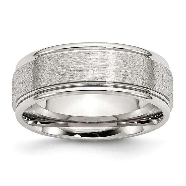 Solid Stainless Steel Grooved Edge 8mm Men's Matte Brushed Finish and Wedding Band Ring Comfort-Fit Size 13