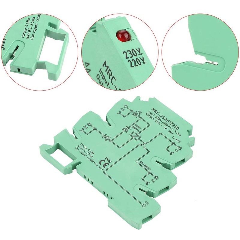 Solid State Relay MRC-25A61Z230 PLC Electromagnetic Contact Interface Relay Module Input 230VAC/220VDC 1NO 1 NC With LED Input State Indicator