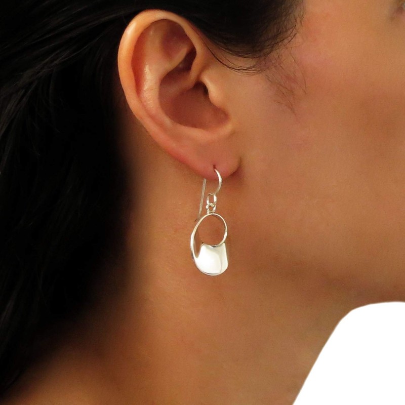Solid Sterling 925 Polished Silver Mobius Circle Drop Earrings