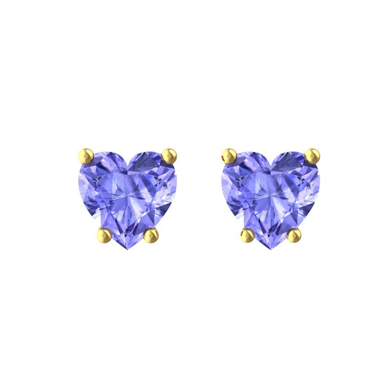 - SPECS - The elegant and gracefull fine cut heart shaped elegant Tanzanite CZ stud earrings, are made with solid sterling silver, and combined with beautiful CZ gemstones to give off a distinct look and a sleek finish. The brilliant genuine sparkle of the Tanzanite CZ is set in a prong and holds 1.45 carats both sides .These earrings also feature a 0.9 MU gold plated finish. The earrings come with top quality craftmanship push backs that are made in solid sterling silver.