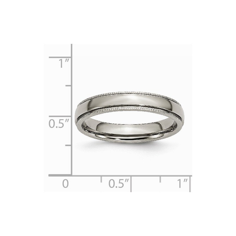 Solid Titanium Grooved and Beaded Edge 4mm Plain Classic Wedding Band Ring Comfort-Fit Size 10