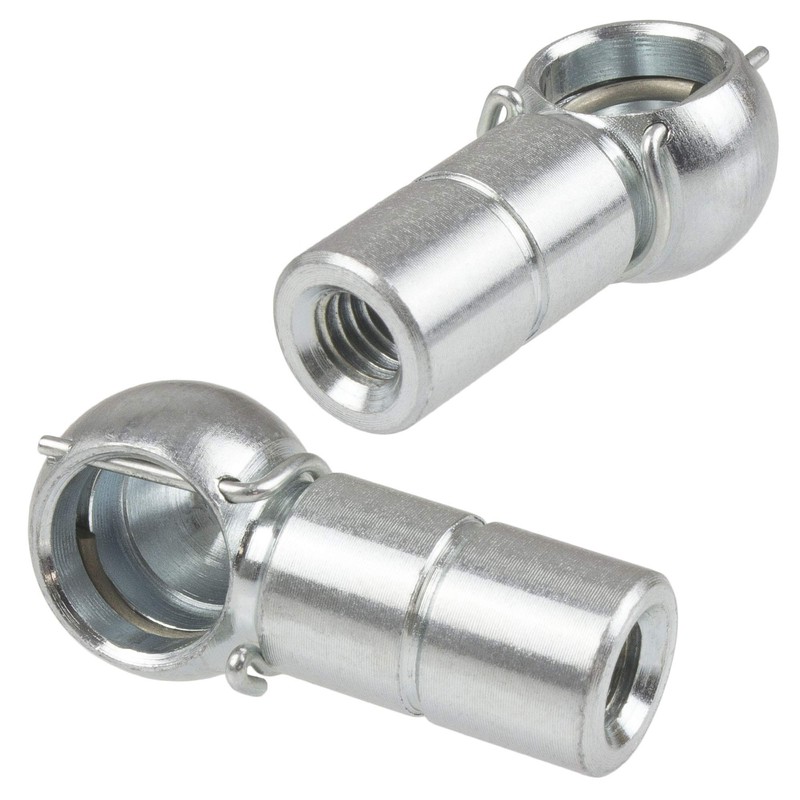 Our ball pans with left-hand thread are manufactured according to DIN 71805 form B, made of galvanised steel with safety bar. The area of application ranges from the car spare part area (coupling rods, hood lifters, gear cables and much more). from home, garden, model making in various areas, to plant construction in industry. Thanks to the production according to DIN standard, consistent quality is guaranteed and the range of application is not tied to manufacturers, brands or components. Ball sockets according to DIN combined with a ball pin according to DIN 71803 form an angle joint according to DIN 71802