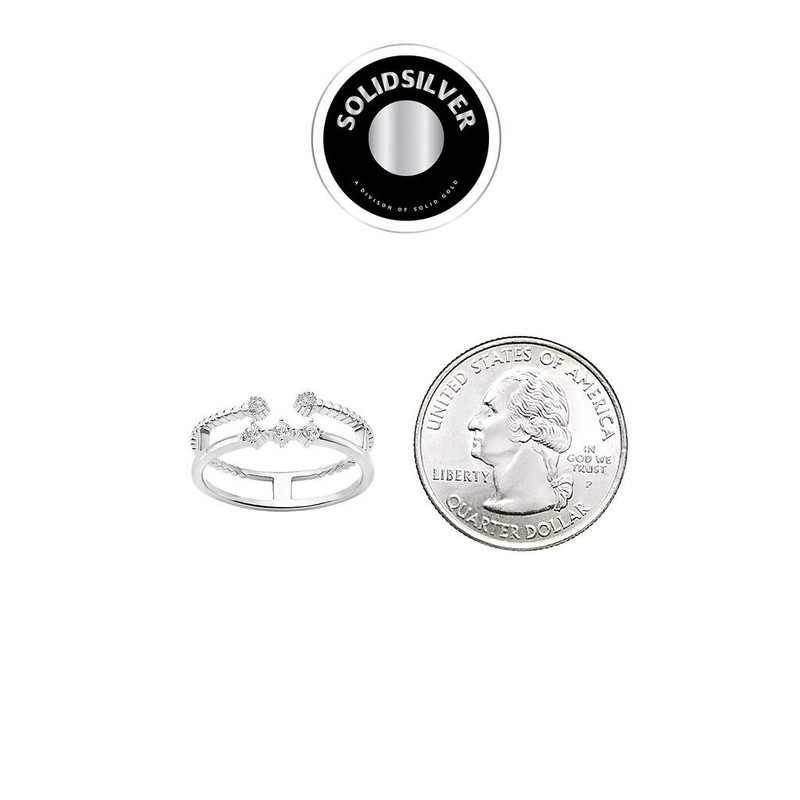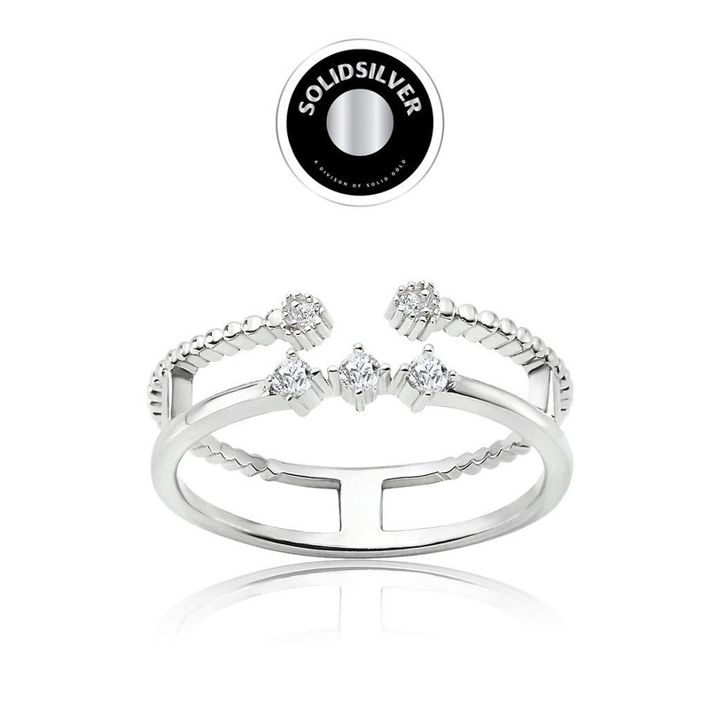 SOLIDSILVER- Sterling Silver Crystal Clear CZ Double Row Heart Style Ring | Sizes 6