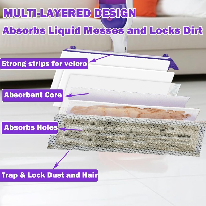 • 【STRONGER WATER ABSOROTION】4 layers of soft fabric and thicker absorbent core for Swiffer PowerMop refill pad cleaning gives them an edge in cleaning performance. The replacement pad refills are made of thickened cotton material, which has strong water absorption with nearly 3,000 water-absorbing holes, which can quickly absorb moisture and stains on the ground, making cleaning work more efficient, effectively reducing the residue of dust and stains. Power mop refill pads reduce the trouble of repeated wiping.