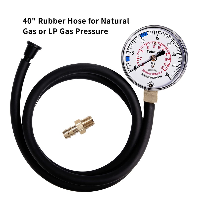 Solimeta Natural Gas or LP Gas Manifold Pressure Test Kit, LP Gas Pressure Tester, Natural Gas Meter, 0-35" W.C