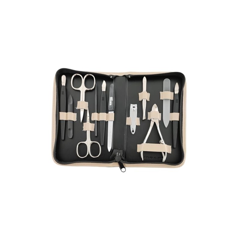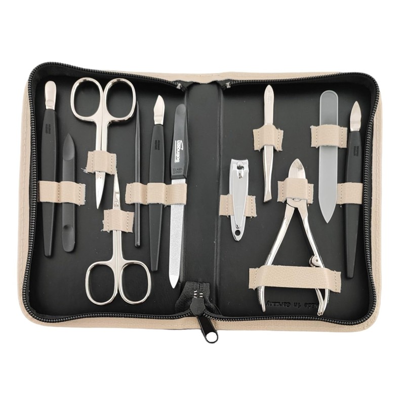 Solingen 12-Piece Manicure Set with Leather Case Nail Care (Beige)