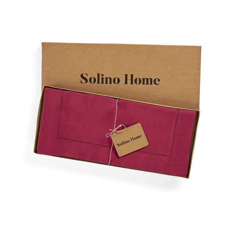 A pure linen classic, this hand-crafted Table Runner from our Hemstitch Collection is woven of 100% linen and is as soft and luxurious as the vintage classic heirloom linens that inspired them. Each runner is beautifully edged with an intricate hemstitched border, tailored with a one-inch hem and mitered corners. Like all fine linens and textiles, the Hemstitch collection mellows with each washing, bringing it a wonderful heirloom feel. Coordinates with other pieces and colors in the Classic Hemstitch Collection. Have a large table? Our Long Hemstitch Table Runner is available up to 156". For an additional touch of beauty and elegance, layer this table runner with a tablecloth, placemats and coordinating napkins from the Classic Hemstitch Collection.