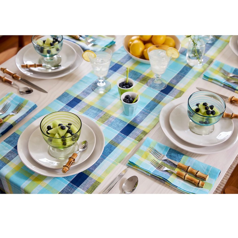 - 100% Pure European Flax Linen Table Runner - Summer Madras Plaid | Handcrafted By Skilled Artisans