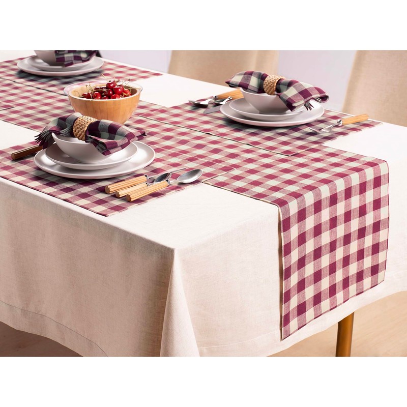 - Size - 14 x 90 Inches Long Table Runner; Color - Beet and Cream Check Table Runner | (Sizes are standard but they may vary slightly due to care taken to provide a seamless look and invisible stitching)