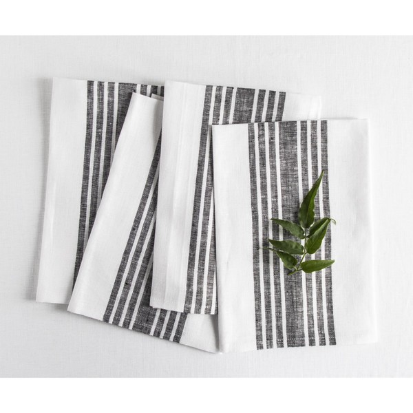 Solino Home Farmhouse Linen Cloth Napkins 20 x 20 Inch - 100% Pure Linen Stripe Black and White Dinner Napkins Set of 4 for Spring, Mothers Day, Easter Decorations - Handcrafted and Machine Washable