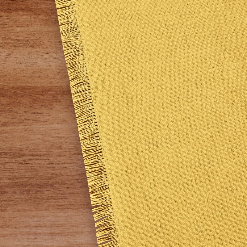 Solino Home Fringe Linen Table Runner 48 Inch – 100% Pure Linen Marigold Yellow Short Table Runner 14 x 48 Inch Ideal for Dresser and Coffee Tables - Easter