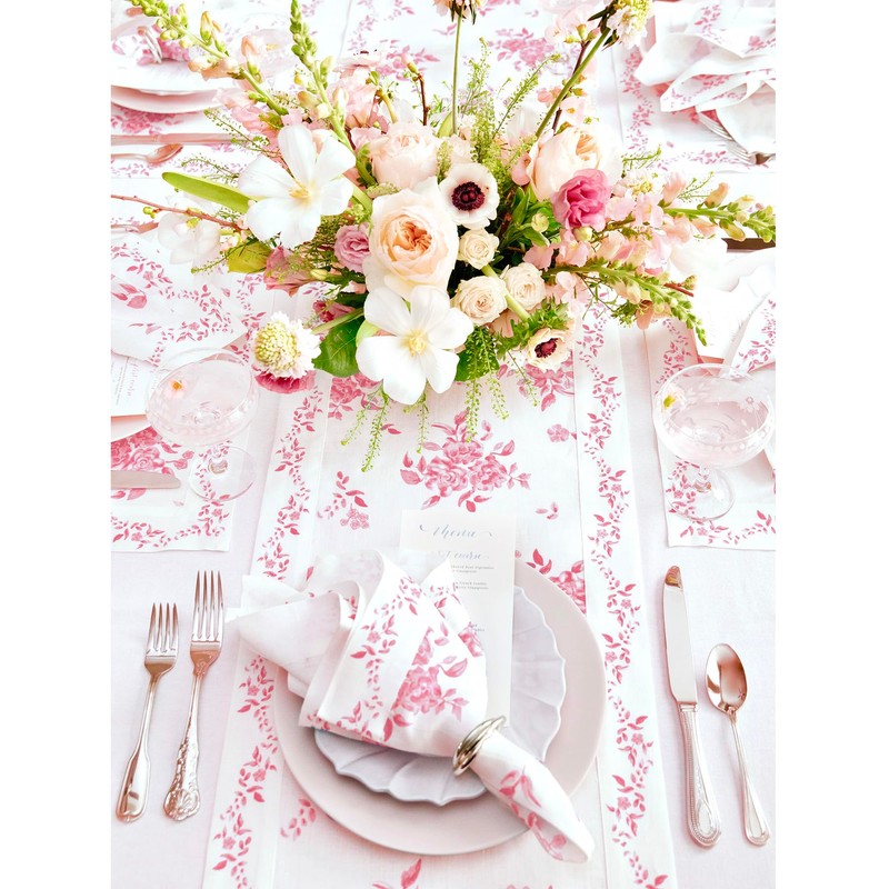 - Jolie Fleur Table Runner is handcrafted from 100% Pure Linen and come with digitally printed soft pink and crisp white floral pattern, perfectly suited for spring, summer, fall and winter.