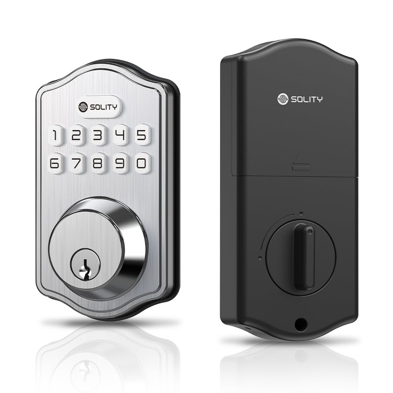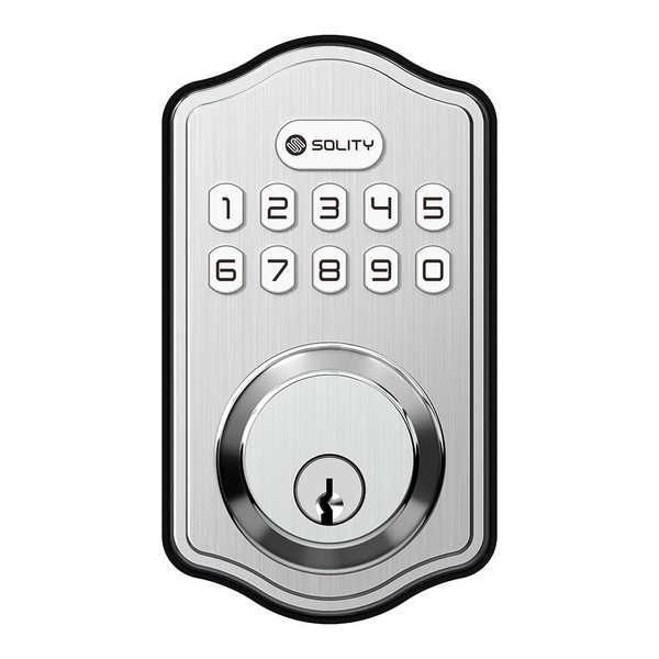 Solity Smart Digital Electric Deadbolt Keypad Lock, Keyless Entry, Auto Lock, 100 Custom Codes, Easy Installation, Exterior Front Entry Door, Residential, Fingerprint (Satin Nickel, Keypad)