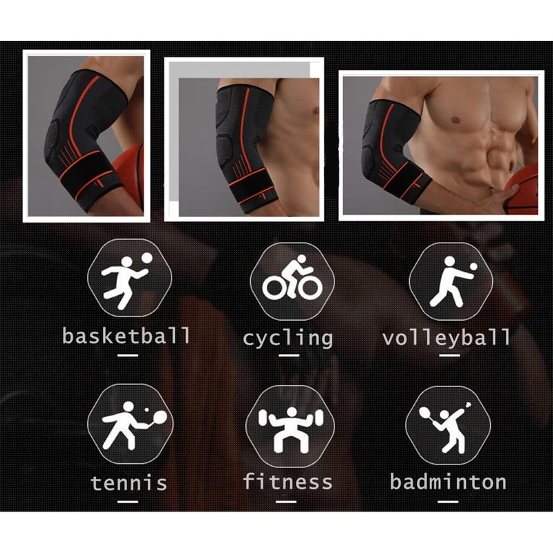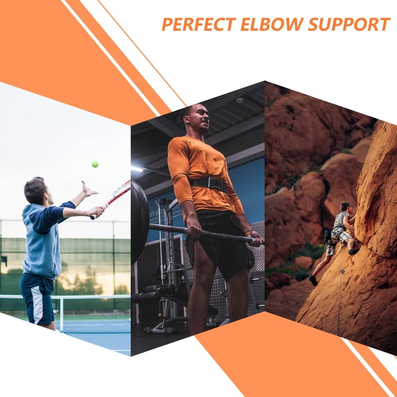 - HIGH QUALITY An excellent elbow brace that has combined the properties of polyester, spandex and nylon to provide elasticity. The adjustable strap provides the desired compression and ensures comfort during use. Unisex, perfect for men and women and can be worn on the left or right arm while playing tennis, golf, basketball, baseball, volleyball.