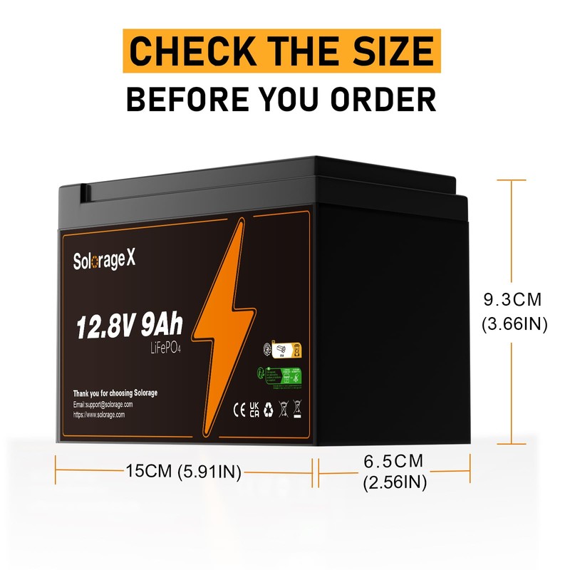 Solorage X 12V LiFePO4 Lithium Battery (12V9A-New)