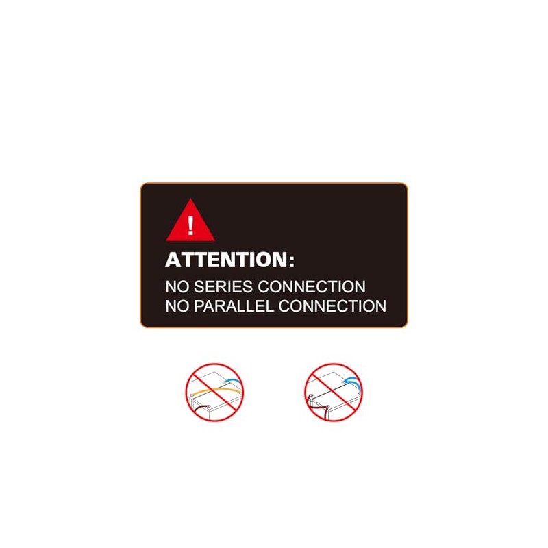 - Attention Plz: Please note that our batteries cannot be connected in series or parallel. We have specifically stated this because we have experienced problems with connecting too many batteries in the past. To ensure your safety and the proper functioning of your batteries, please follow this guide.
