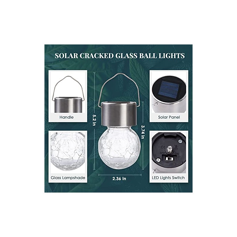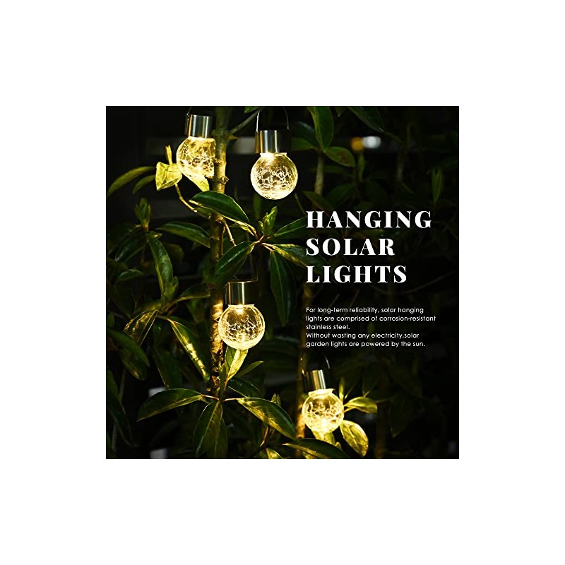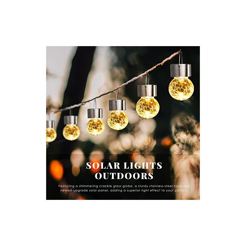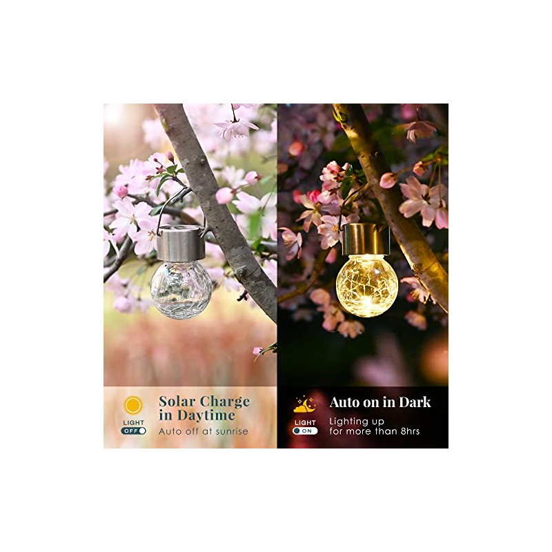 SOLPEX Hanging Solar Lights Outdoor, 8 Pack Decorative Cracked Glass Ball Light, Solar Powered Waterproof Globe Lighting, Hanging Globe Solar Lights for Garden, Yard, Patio, Lawn, Flower Bed