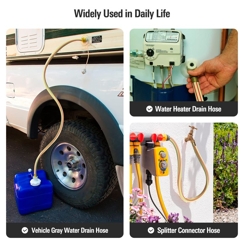 - 👍 BRASS COUPLINGS, NO LEAKING - High-quality solid brass fittings are reinforced with high-grade industrial rubber to maintain a tight seal on your hose and provide anti-skid protection. Remember to put our rubber gasket into the hose conncter that will avoid leaking water.