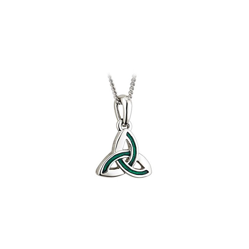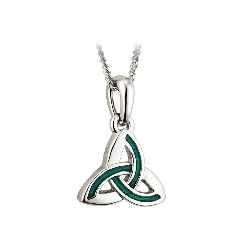 The trinity knot is one of the best-known symbols of Ireland, historically associated with Christianity and today representative of universal values like unity and strength. This rhodium plated pendant features a standard design, but gets a festive pop of color with hints of green enamel. Complete with a simple silver chain, this piece is perfect for adding a little Irish sparkle to your everyday life. Solvar is a family-owned company established in Dublin in 1941, and is one of the most well-respected manufacturers of Irish heritage jewelry.