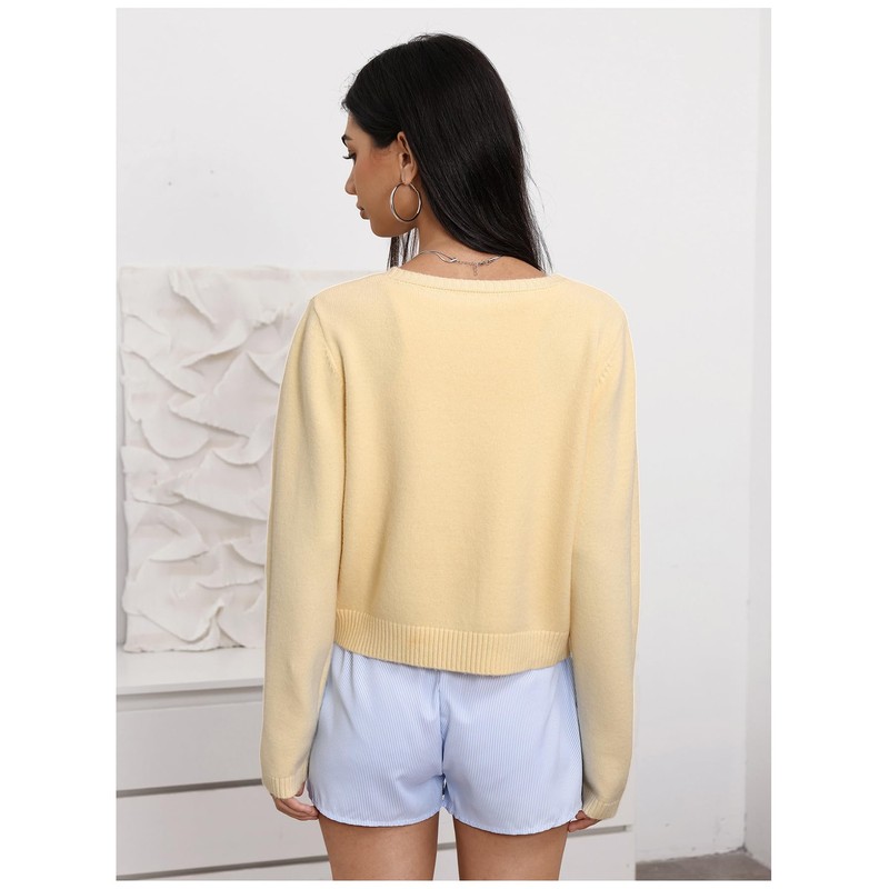 SOLY HUX Button Down Lightweight Cardigans for Women Trendy Crop Cardigan Sweaters Cute Knitwear Back to School Outfits Solid Yellow Large