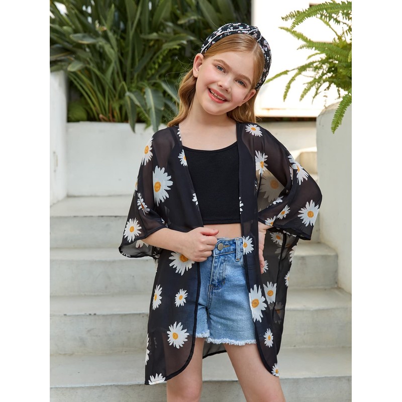 - Floral print swimsuit cover up beach kimono for girls