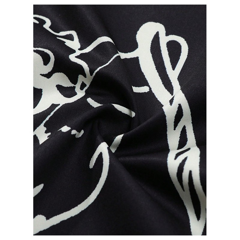 SOLY HUX Men's Summer Zip Up Graphic Tees Short Sleeve Hawaiian Tshirts Lapel Collar Tops Black Graphic Large
