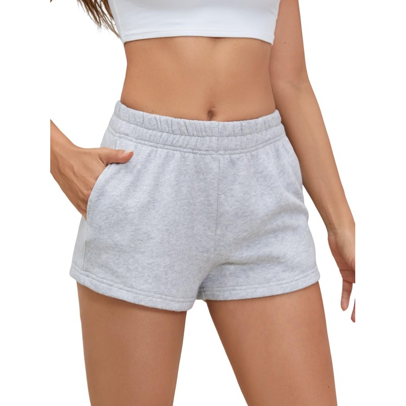 SOLY HUX Women's Sweat Shorts Casual Summer Elastic High Waist Running Lounge Shorts with Pockets Light Grey Medium