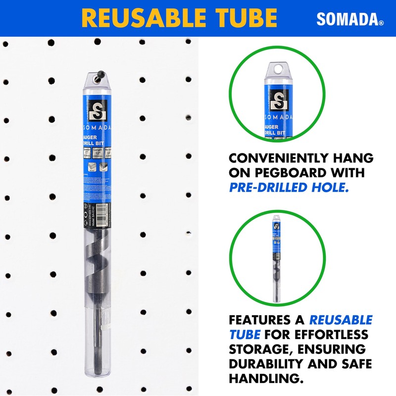 - 🏆Advantages of SOMADA Auger Bits: Opting for an auger bit ensures the ability to bore deep and seamless holes in wood, plastic, and various other materials. The screw tip facilitates a safer and smoother initiation compared to spade or paddle bits.