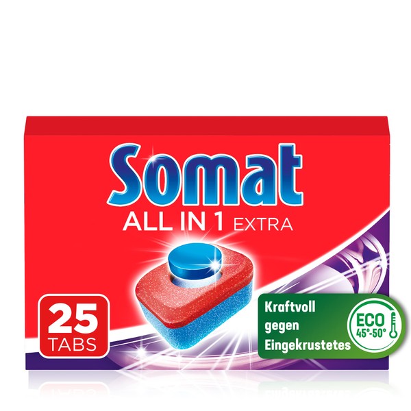 Somat All-in-1 extra dishwasher tablets (25 tabs), dishwasher tablets for radiant cleanliness even at low temperatures, combat even encrusted residues