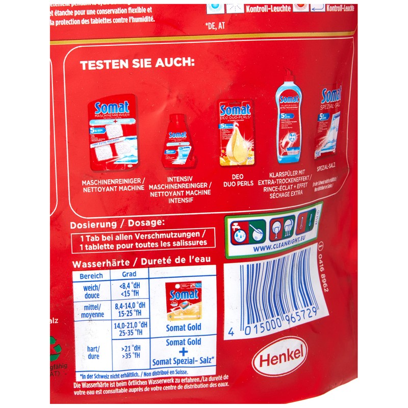 - The Somat Gold tabs with deep cleaning offer the best Somat performance against burnt-on food and even remove cereals effortlessly.