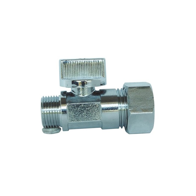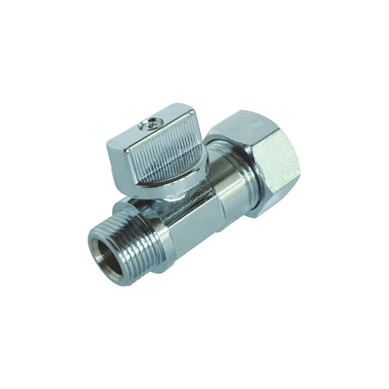 - Mini ball valve with bicone TC14 12/17 male brass chrome-plated